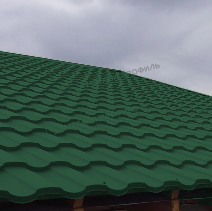 Профиль Монтекристо-M характеризуется плавными волнами и симметричным дизайном, который имитирует классическую керамическую черепицу. Высота волны составляет около 50 мм, что обеспечивает отличную жесткость и устойчивость к снеговым нагрузкам. Ширина листа позволяет минимизировать количество стыков при монтаже, упрощая процесс укладки. Этот профиль идеален для крыш с уклоном от 12 градусов, где он демонстрирует отличную водоотводящую способность. В цвете Зеленый мох профиль выглядит особенно натурально, подчеркивая архитектурные особенности здания.