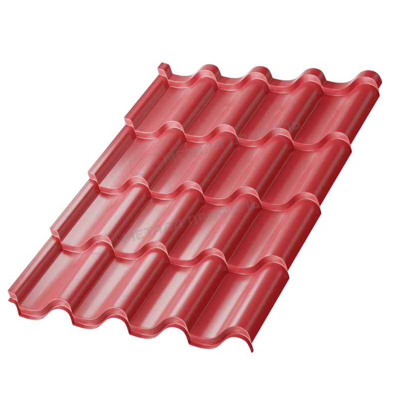 Одно из ключевых преимуществ – долговечность: срок службы превышает 30 лет благодаря качественному покрытию. Материал легкий (около 4,5 кг/м²), что снижает нагрузку на стропильную систему и упрощает транспортировку. Экологичность обеспечивается отсутствием вредных веществ, а монтаж не требует специального оборудования. В цвете RAL 3011 крыша выглядит стильно и не требует частого ухода. Кроме того, продукт устойчив к пожарам и не поддерживает горение, повышая безопасность строения.